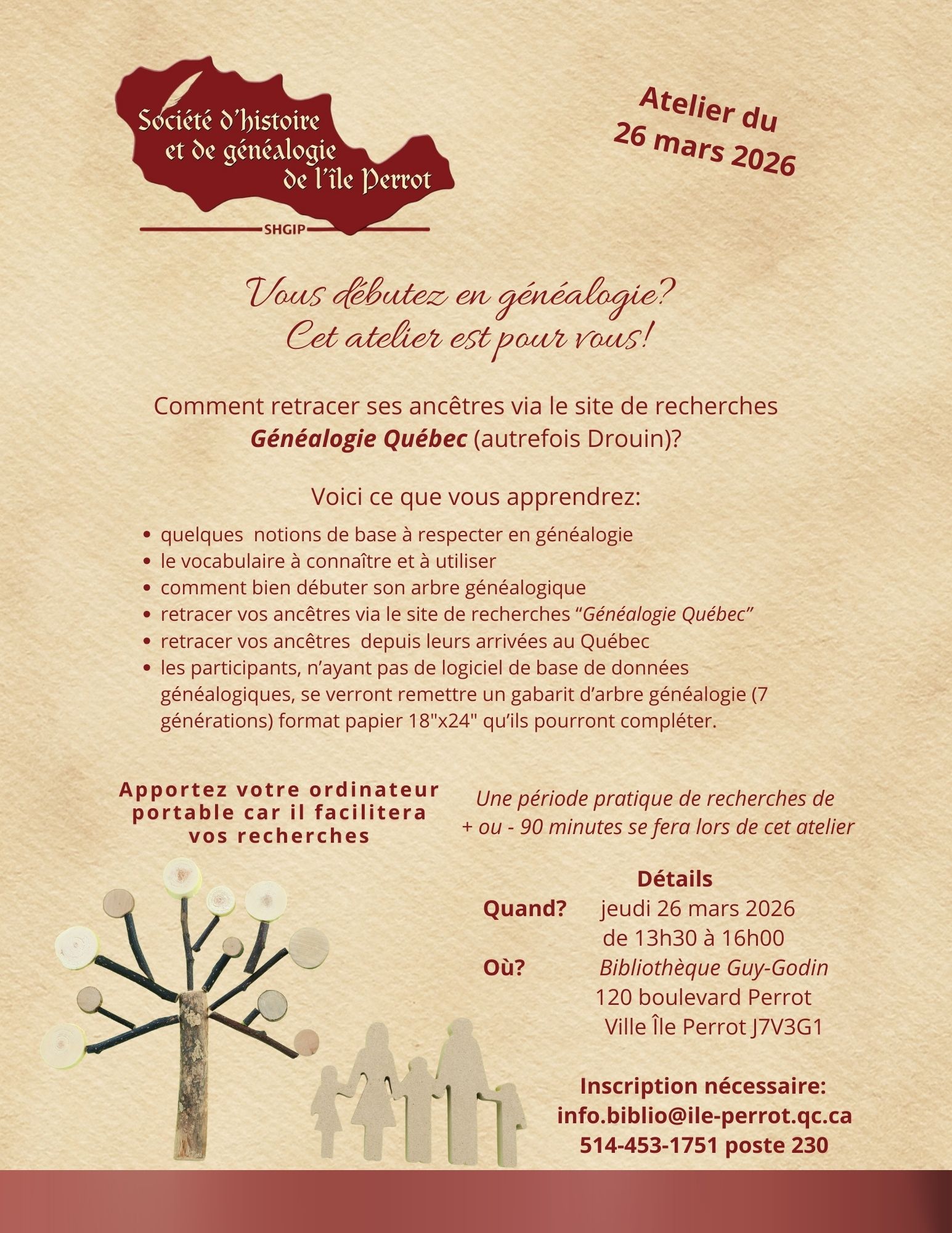 Puisqu'il y aura une période de pratique de recherches de plus ou moins 90 minutes, nous vous demandons d'apporter votre ordinateur portable car il facilitera vos recherches.